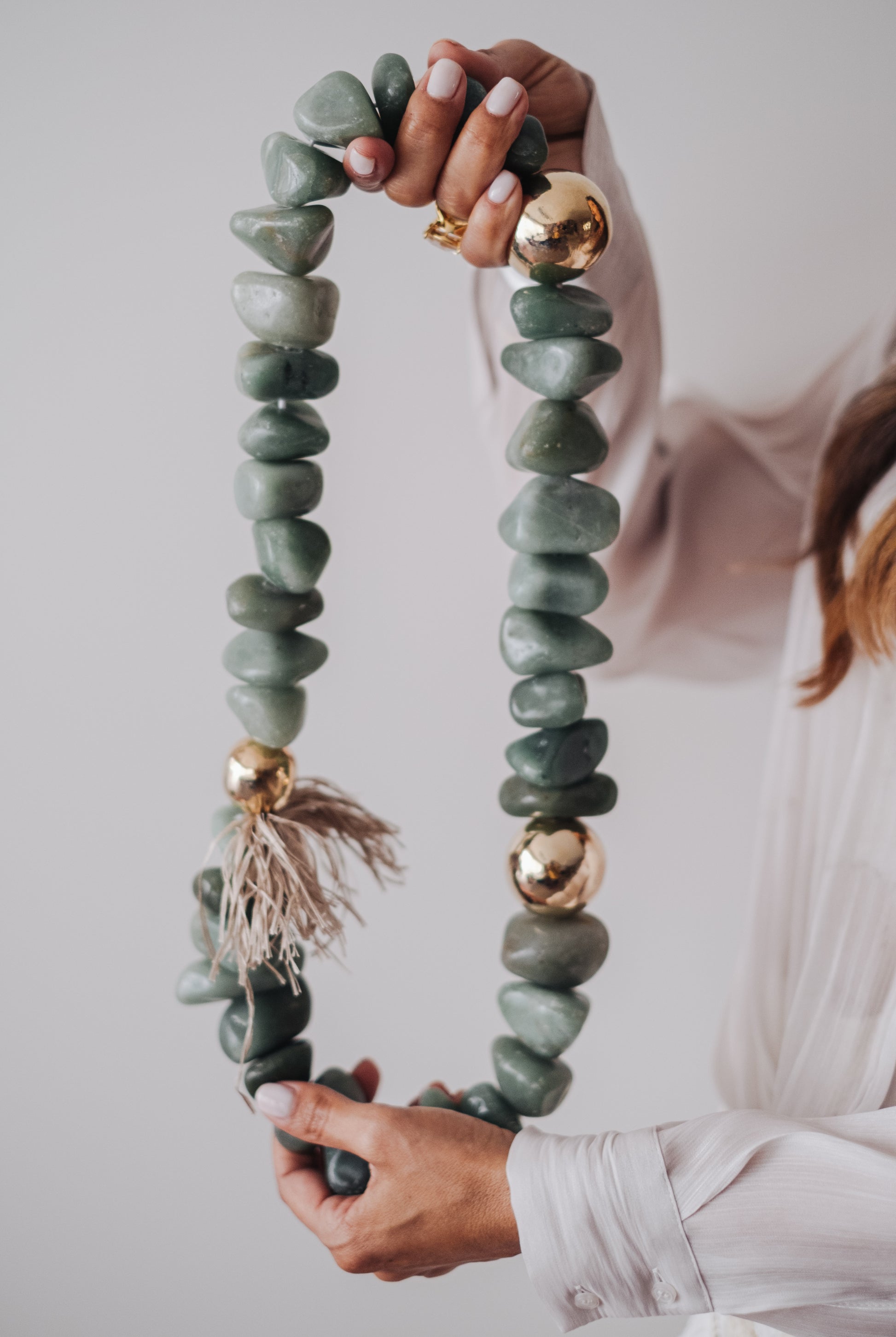 O Portal Verde Dourado é mais do que um colar de mesa: é um símbolo de cura, vitalidade e prosperidade para o lar.