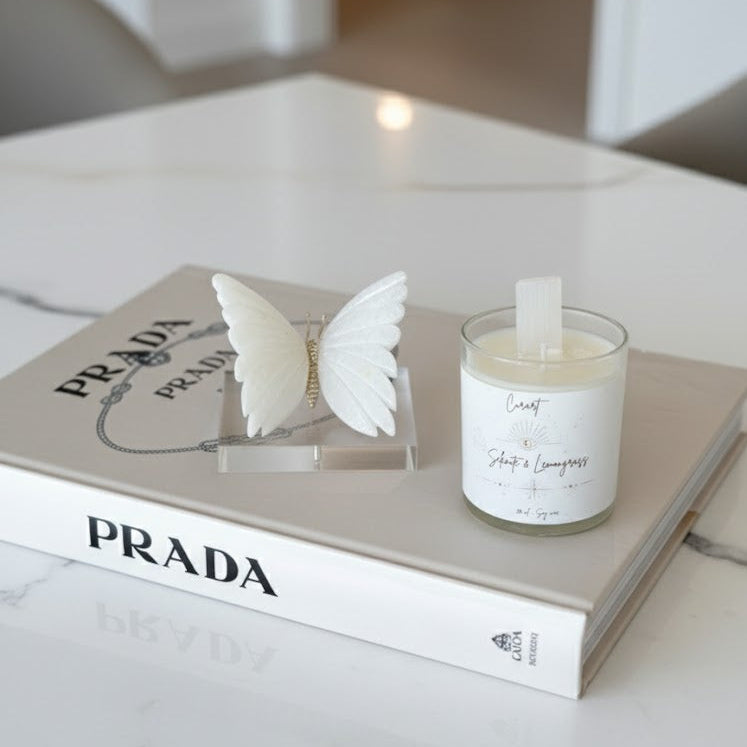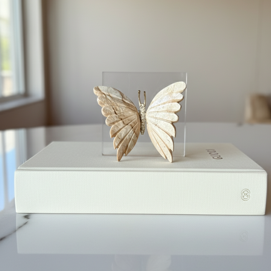 Esculpidas em dolomita natural, estas borboletas representam renascimento, leveza e transformação interior.