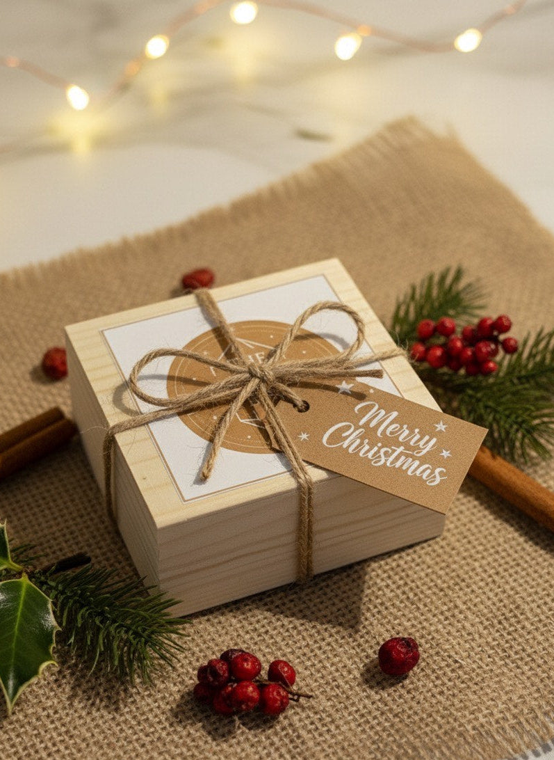 ✔ Caixa em madeira — elegante, durável, sustentável e pronta para presente
