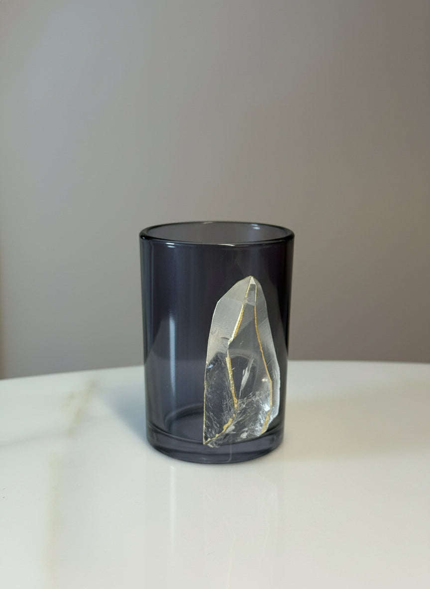Vidro fumado com Cristal Lemuriano lapidado e fixado manualmente.