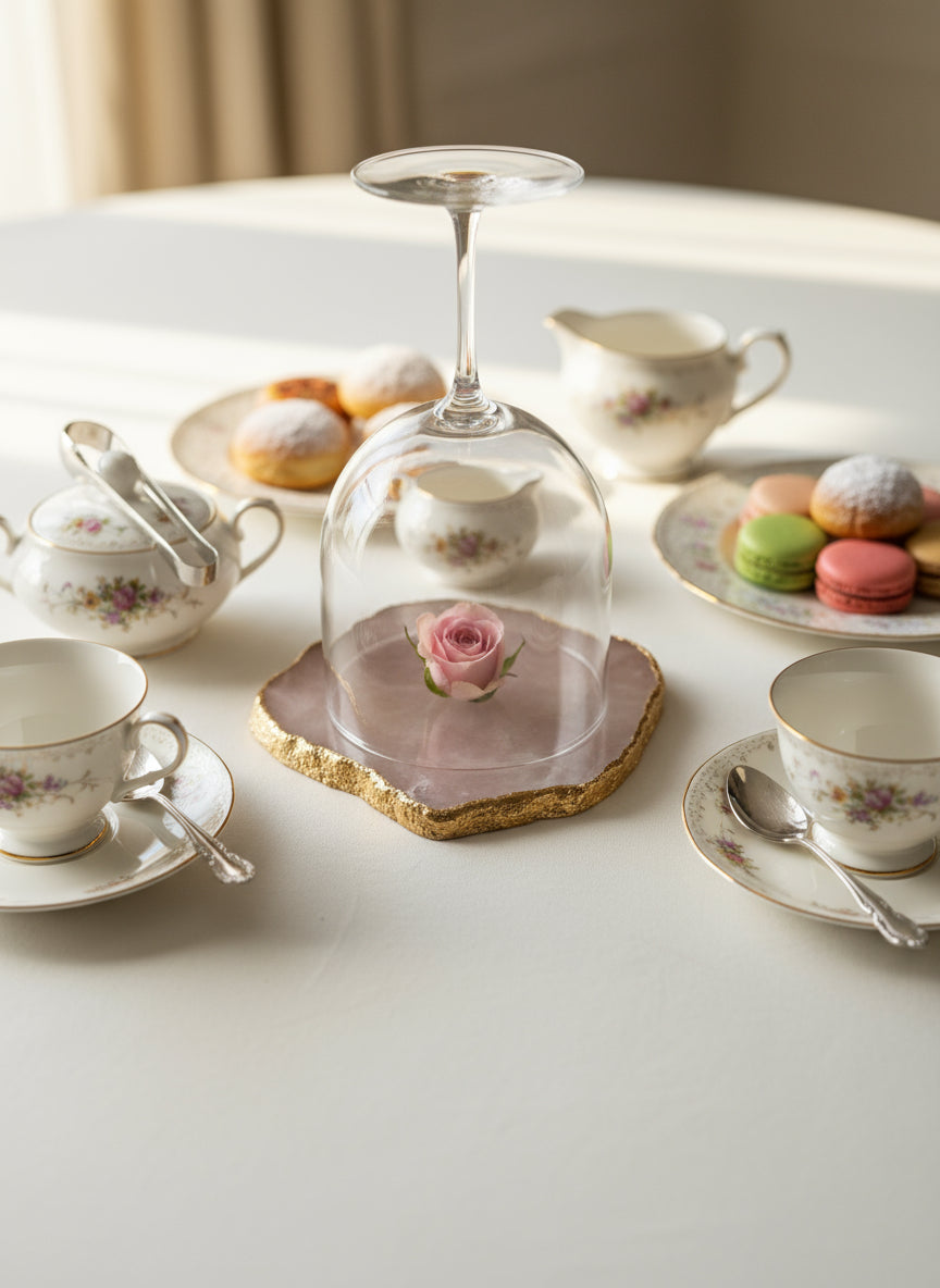 O quartzo rosa irradia amor, harmonia e suavidade — transformando a tua mesa num espaço de beleza e energia acolhedora.