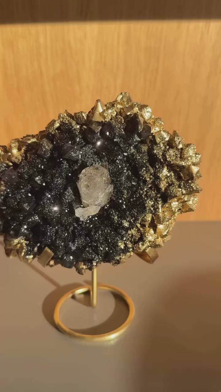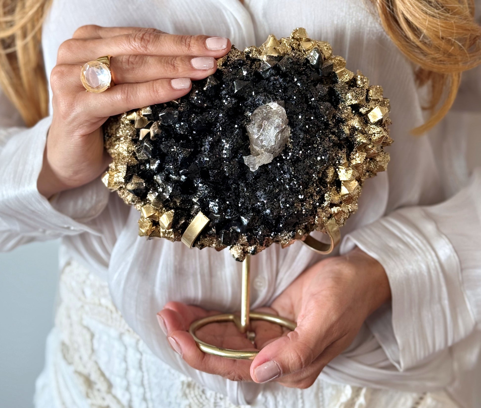 Por ser uma peça criada artesanalmente com resina e cristais naturais, cada obra é única.
